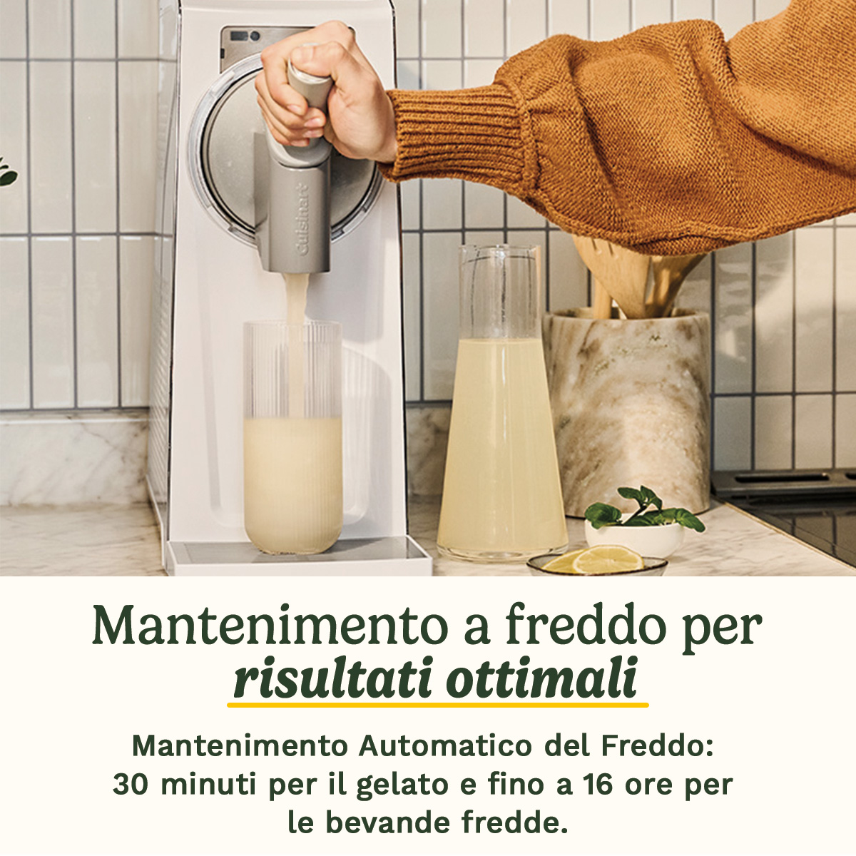 - Funzione automatica Keep Cool: Mantiene il gelato soft fresco fino a 30 minuti e le bevande ghiacciate fredde fino a 16 ore – sempre pronte da servire.