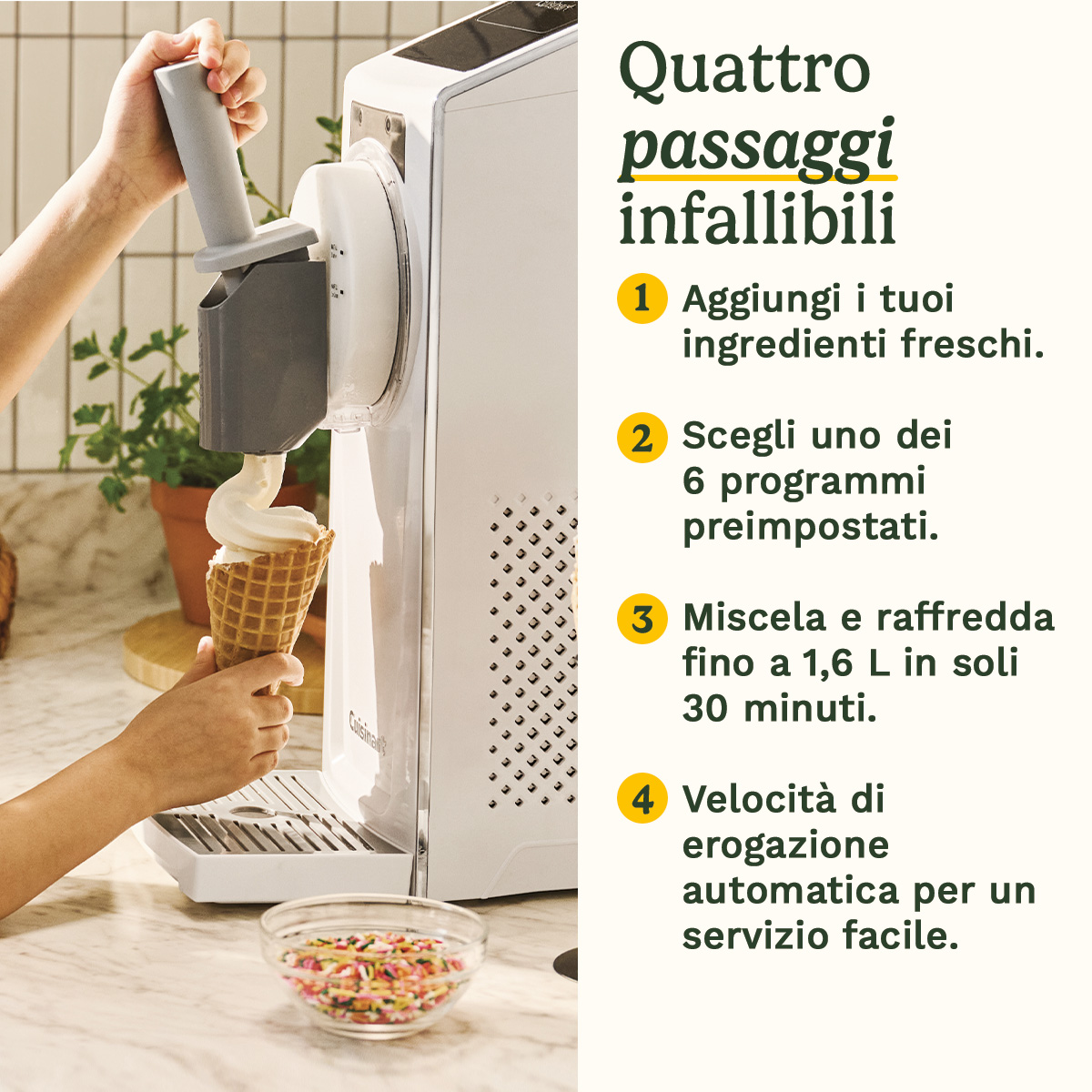- Utilizzo facile in 4 passaggi: Comandi semplici che rendono la creazione di dessert ghiacciati veloce, facile e senza stress, per tutti i livelli.