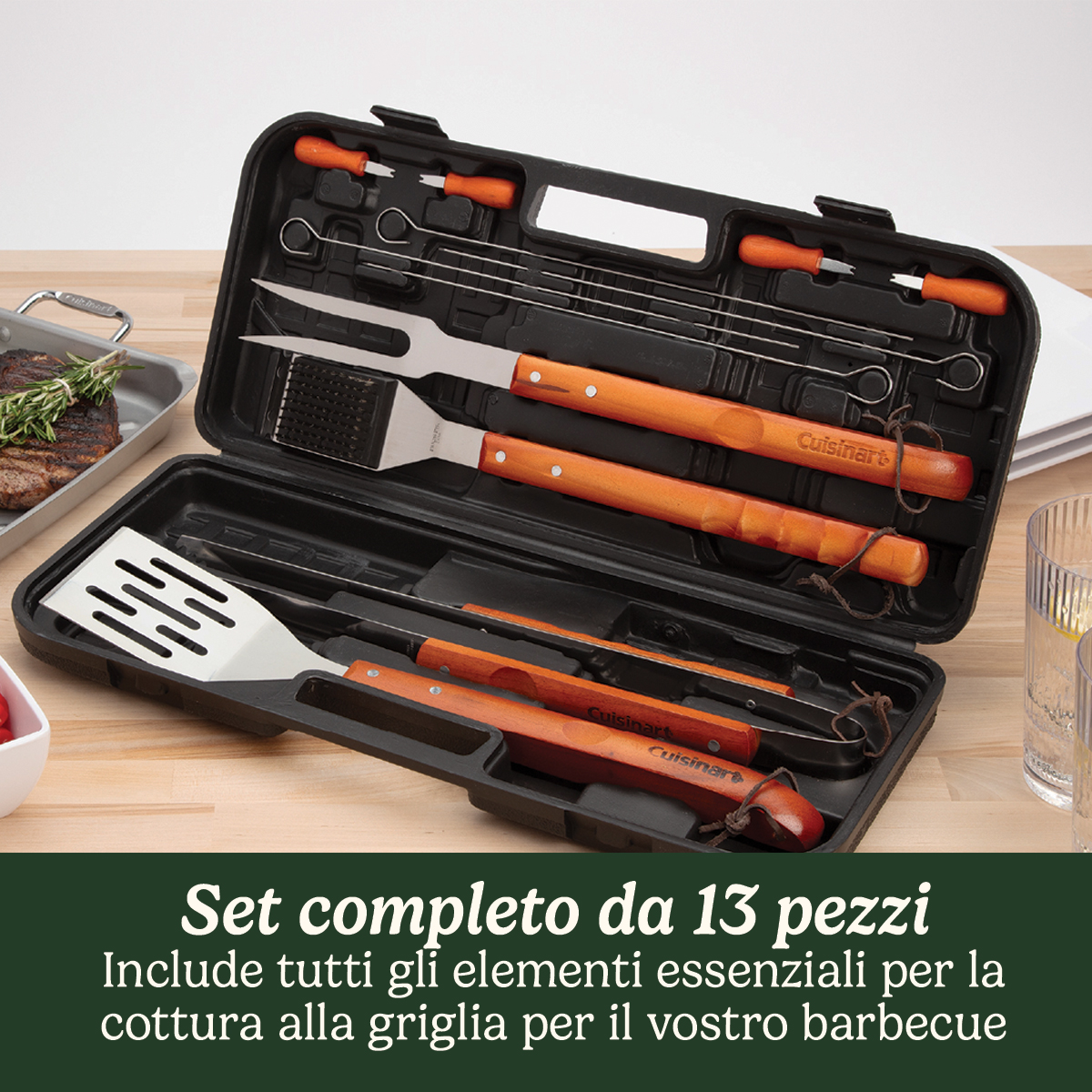 - Compagno di grigliate tutto in uno: Include 12 strumenti essenziali come spatola, forchettone per grigliare, pinze, spiedini, porta mais e spazzola per la pulizia per affrontare ogni sfida alla griglia.