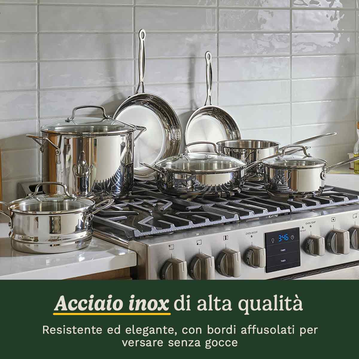 - Prestazioni professionali, semplicità quotidiana: Cucina con sicurezza grazie a un set di pentole in acciaio inox che offre risultati da ristorante direttamente a casa tua. La finitura lucida a specchio aggiunge uno stile senza tempo alla tua cucina.