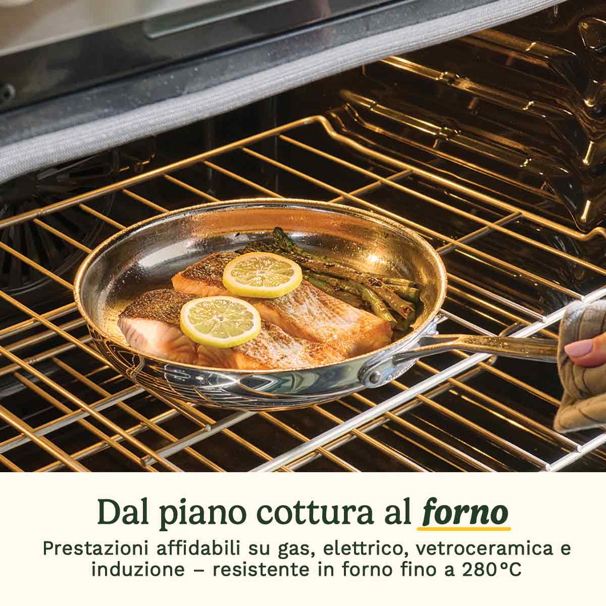 - Riscaldamento rapido e uniforme: Dì addio ai punti caldi. Il fondo incapsulato in alluminio si riscalda rapidamente e distribuisce il calore in modo uniforme per una cottura omogenea in ogni piatto.
